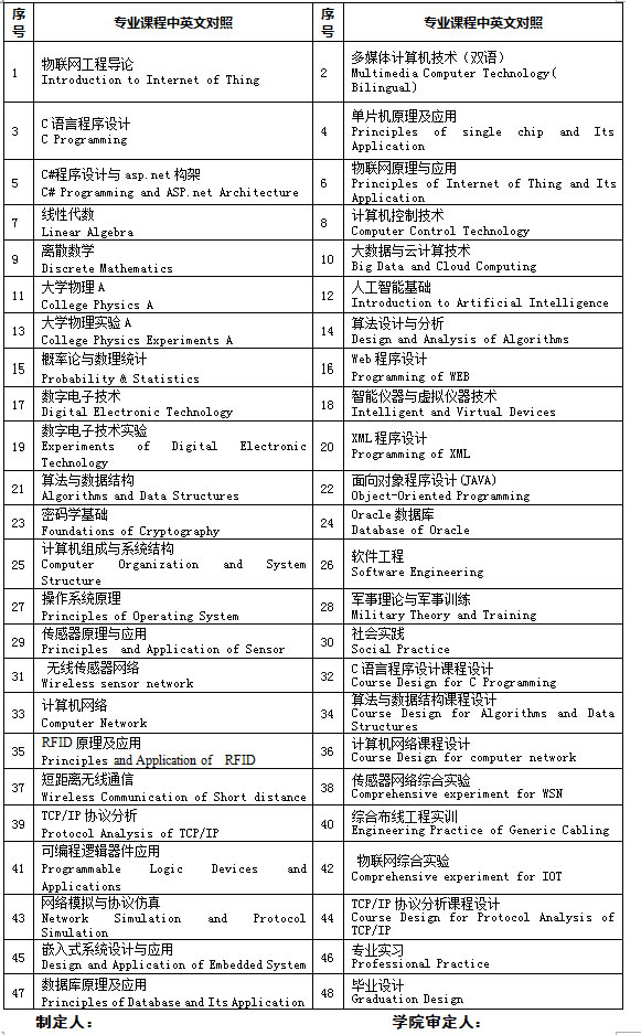 八、物聯(lián)網(wǎng)工程專業(yè)課程設(shè)置