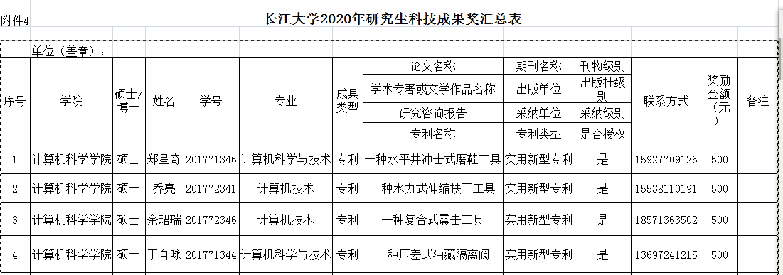 長江大學(xué)計算機(jī)科學(xué)學(xué)院2020年研究生單項(xiàng)獎學(xué)金申請匯總公示