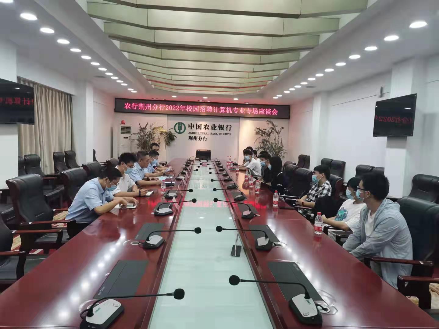 (通訊員 余珺瑞)2021年9月15日9:00,農(nóng)業(yè)銀行荊州分行2022校園招聘計算機專業(yè)專場座談會在農(nóng)業(yè)銀行荊州分行辦公室成功舉行。此次招聘主要面向計算機及相關專業(yè)的2022屆應屆畢業(yè)本科生、研究生。參與此次會議的有農(nóng)業(yè)銀行荊州分行人力資源總經(jīng)理梁紅光、信息技術管理部總經(jīng)理胡綱、信息技術部邵榮祥、信息技術部肖嚴、產(chǎn)品經(jīng)理張之涵、人力資源部嚴圣平,長江大學計算機科學學院就業(yè)專干余珺瑞、應屆本科畢業(yè)生、應屆碩士研究生畢業(yè)生。