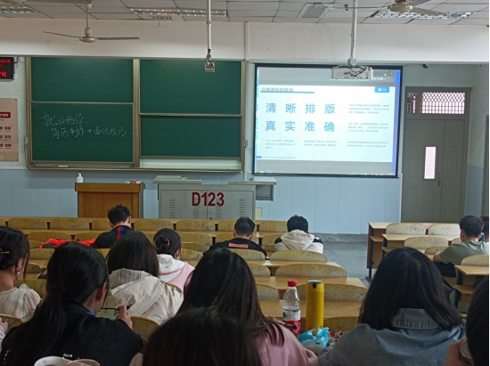 講座伊始,李經(jīng)理以“求職第一課”為題講解了在求職之前需要做的準備工作。李經(jīng)理以個人簡介聯(lián)想為例,引發(fā)同學(xué)們對于簡歷的思考。如何讓簡歷快速的吸引住HR的目光是進行求職的第一步。接著李經(jīng)理,以合格簡歷和不合格簡歷做對比,提出了一份合格的簡歷應(yīng)該滿足“簡歷五重奏”以及打造簡歷“六原則”的簡歷寫作方法。最后李經(jīng)理從面試前的準備、面試過程、面試結(jié)束后3個階段分別介紹了面試中需要注意的技巧。并提醒同學(xué)們,現(xiàn)在行業(yè)內(nèi)卷越來越嚴重,希望同學(xué)們主動出擊,積極擁抱秋招、春招,不要在坐等offer。
