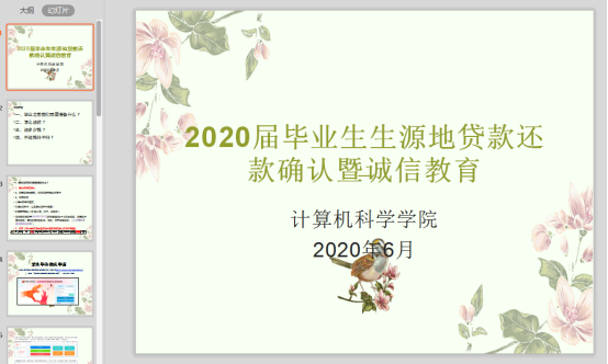 四年級(jí)開(kāi)展畢業(yè)生還款確認(rèn)、誠(chéng)信就業(yè)培訓(xùn),6月15日通過(guò)騰訊會(huì)議召開(kāi)了畢業(yè)生,主要做好宣講還款流程,針對(duì)確認(rèn)學(xué)生聯(lián)系方式等貸后管理工作,同時(shí)加強(qiáng)畢業(yè)年級(jí)學(xué)生的誠(chéng)信就業(yè)教育。