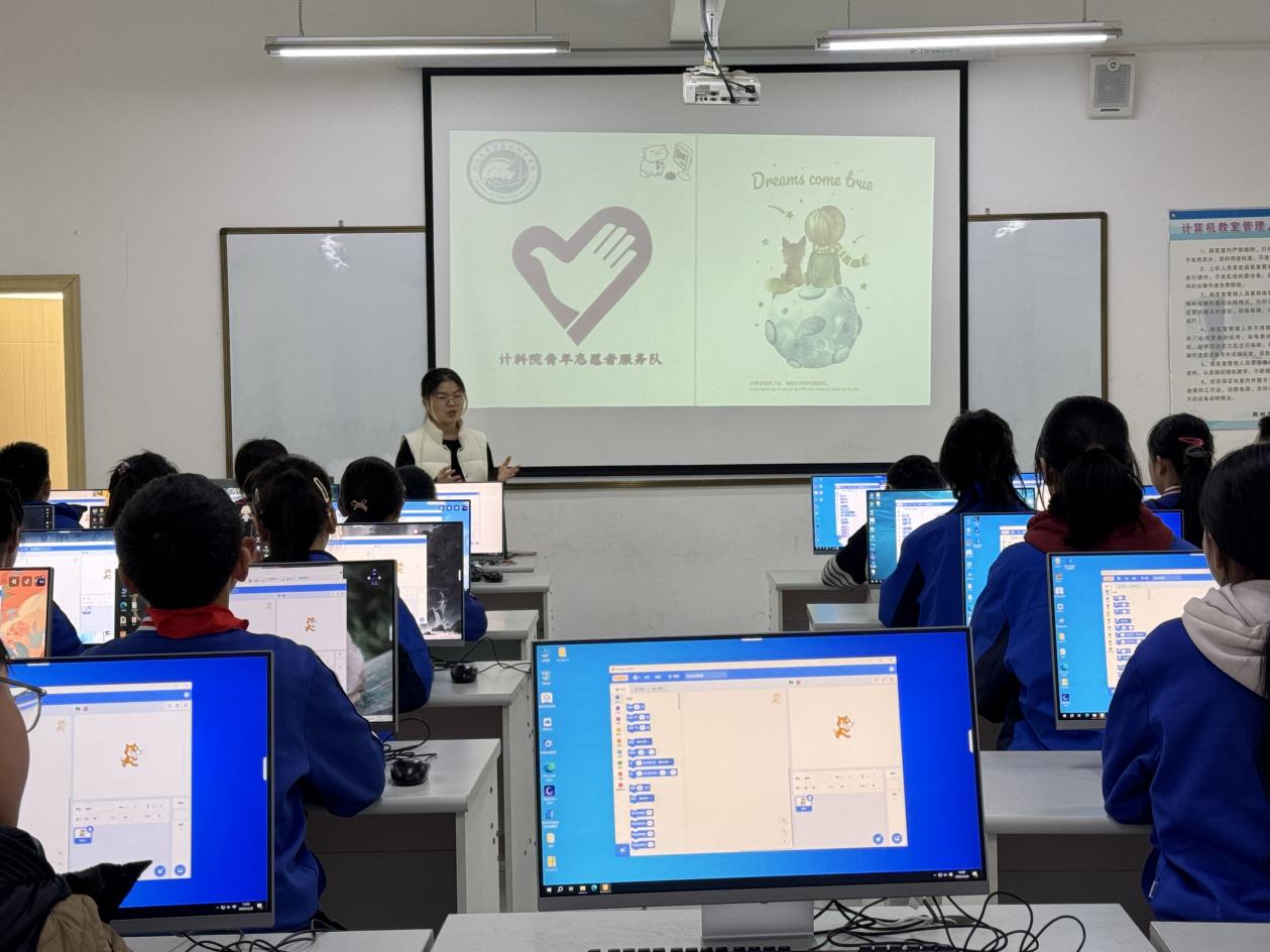“快看!我的坦克發(fā)射炮彈啦!”3月20日,在荊州市沙市實驗小學的計算機教室里,六年級的孩子們興奮地拍手。長江大學計算機科學學院青支隊的志愿者們開展了一場以“編程啟蒙,智創(chuàng)未來”為主題的支教活動,正通過趣味化教學點燃孩子們的科技熱情。