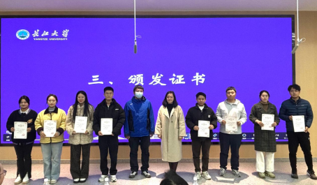 匯報(bào)結(jié)束后,施雷老師、張江莉老師為匯報(bào)同學(xué)頒發(fā)證書并合影留念。