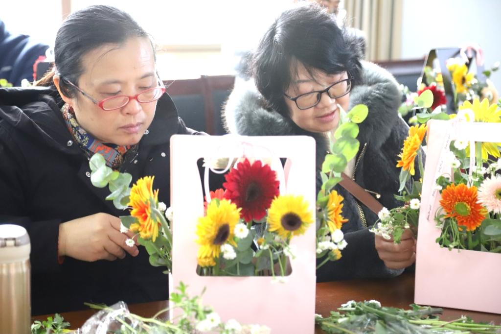 活動伊始,花藝老師詳細介紹了插花藝術(shù)的基本知識、常見花種、插花的基本花型及技巧等內(nèi)容,給女教工們普及了理論知識。