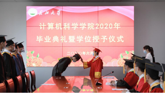 2020年6月28日上午10:00,計(jì)算機(jī)科學(xué)學(xué)院在5教501舉行2020年畢業(yè)典禮暨學(xué)位授予儀式。學(xué)院院長(zhǎng)崔艷榮,黨委書(shū)記高明成,副院長(zhǎng)向宇、詹煒、宋文廣,黨委副書(shū)記顏學(xué)俊,各系主任,全體輔導(dǎo)員及15名畢業(yè)生代表在現(xiàn)場(chǎng)參加畢業(yè)典禮。根據(jù)疫情防控要求,今年畢業(yè)典禮采取線上線下相結(jié)合的方式,未到現(xiàn)場(chǎng)的師生也通過(guò)騰訊會(huì)議參加了典禮。