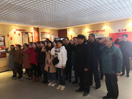 參觀結(jié)束時(shí),全體黨員同志面對(duì)黨旗,舉起右拳莊嚴(yán)宣誓,再次重溫了入黨誓詞。