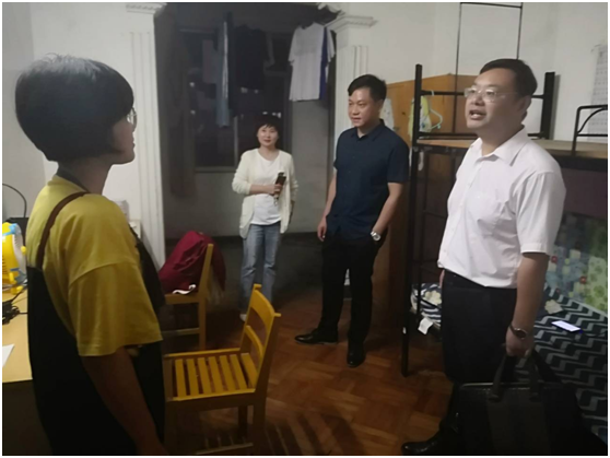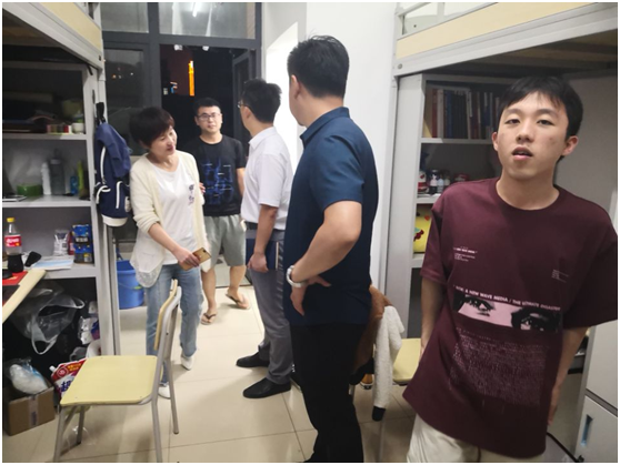 9月19日晚上8點(diǎn),計(jì)算機(jī)科學(xué)學(xué)院院長(zhǎng)崔艷榮、副院長(zhǎng)宋文廣、學(xué)院黨委副書記顏學(xué)俊、研究生輔導(dǎo)員付盈主任走訪2019級(jí)全體碩士研究生的學(xué)生宿舍,深入了解他們的思想、學(xué)習(xí)、生活、安全、衛(wèi)生等情況。