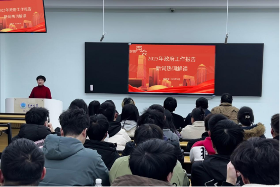 崔院長首先簡要梳理了《2025年政府工作報告》的核心內(nèi)容,帶領同學們回顧了我國2024年整體工作情況,介紹了今年主要預期目標和部分重點工作。隨后,崔院長為同學們詳細解讀了《2025年政府工作報告》中無還本續(xù)貸、宏觀政策取向一致性評估、人工智能+等17個熱詞新詞。尤其是在跟同學們專業(yè)息息相關的人工智能領域,崔院長強調(diào)在我國,人工智能技術發(fā)展非常迅猛,已經(jīng)深入各行各業(yè)。它是推動產(chǎn)業(yè)轉(zhuǎn)型升級和創(chuàng)新發(fā)展的一種理念與實踐,不僅是將人工智能應用于某一特定領域,而是通過技術的集成與創(chuàng)新,實現(xiàn)對傳統(tǒng)行業(yè)的全面賦能與重構。這種能夠改變?nèi)藗兩罘绞降男录夹g,同學們一定要關注了解。