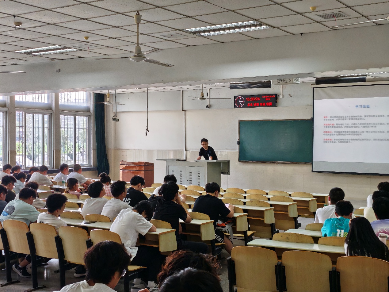 接著,25屆畢業(yè)生代表張振東、劉升松、劉晶晶、盧一帆、何承文、蔣宏捷和彭飛云分別從就業(yè)、考證、考研保研、競賽、考公考編等方面分享了他們的學(xué)習(xí)經(jīng)驗和心得。