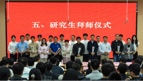 典禮現(xiàn)場(chǎng)最受矚目的環(huán)節(jié),當(dāng)屬莊重的拜師儀式。2025級(jí)研究生依次向各自的導(dǎo)師深深鞠躬,并獻(xiàn)上代表感恩與敬意的鮮花。這一“躬”,承載著對(duì)學(xué)術(shù)傳統(tǒng)的敬畏;這一“獻(xiàn)”,傳遞著對(duì)知識(shí)傳承的承諾。簡(jiǎn)短而隆重的儀式,不僅讓“尊師重道”的優(yōu)良傳統(tǒng)在現(xiàn)場(chǎng)落地生根,更標(biāo)志著全體新生研究生涯的正式開啟。