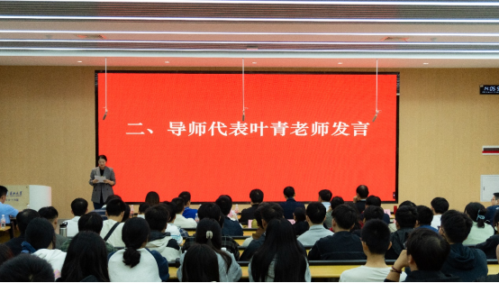 本次典禮分為“拜師儀式”與“教育規(guī)劃”兩大階段,流程緊湊、意義深遠(yuǎn)。在第一階段,研究生導(dǎo)師代表葉青副教授率先致辭。她以AlphaGo的技術(shù)發(fā)展歷程為切入點(diǎn),寄語(yǔ)新生既要深耕學(xué)術(shù)根基、傳承學(xué)科傳統(tǒng),也要敢于突破思維定式、勇闖科研新領(lǐng)域,始終堅(jiān)守投身計(jì)算機(jī)學(xué)科研究的初心。