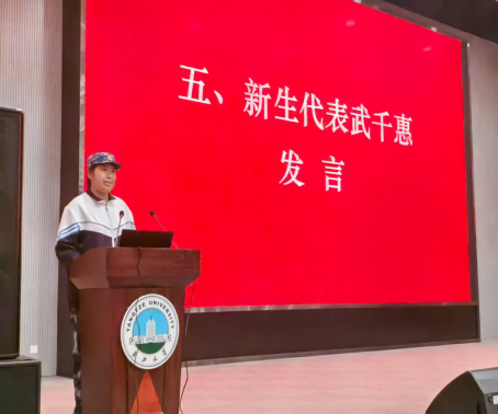 新生代表、計科32510班武千惠在發(fā)言中展現(xiàn)出昂揚向上的青春風(fēng)貌,呼吁全體新生主動適應(yīng)身份轉(zhuǎn)變,保持專業(yè)熱情與技術(shù)好奇心,以“永不言退”的勁頭不斷超越自我,在探索中繪制獨特人生藍圖。