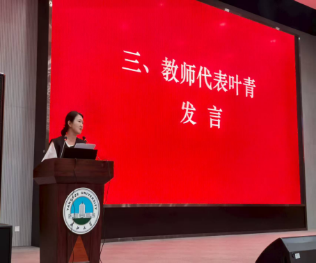 教師代表葉青副教授結(jié)合多年教學(xué)科研經(jīng)驗,強調(diào)“熱愛與堅持”的重要性。她鼓勵同學(xué)們主動探索專業(yè)興趣,以內(nèi)在動力克服學(xué)業(yè)挑戰(zhàn),及時鞏固課堂知識,注重日常積累,不斷提升學(xué)科素養(yǎng)與技術(shù)能力,并常懷感恩之心,珍惜身邊師長與同窗情誼。