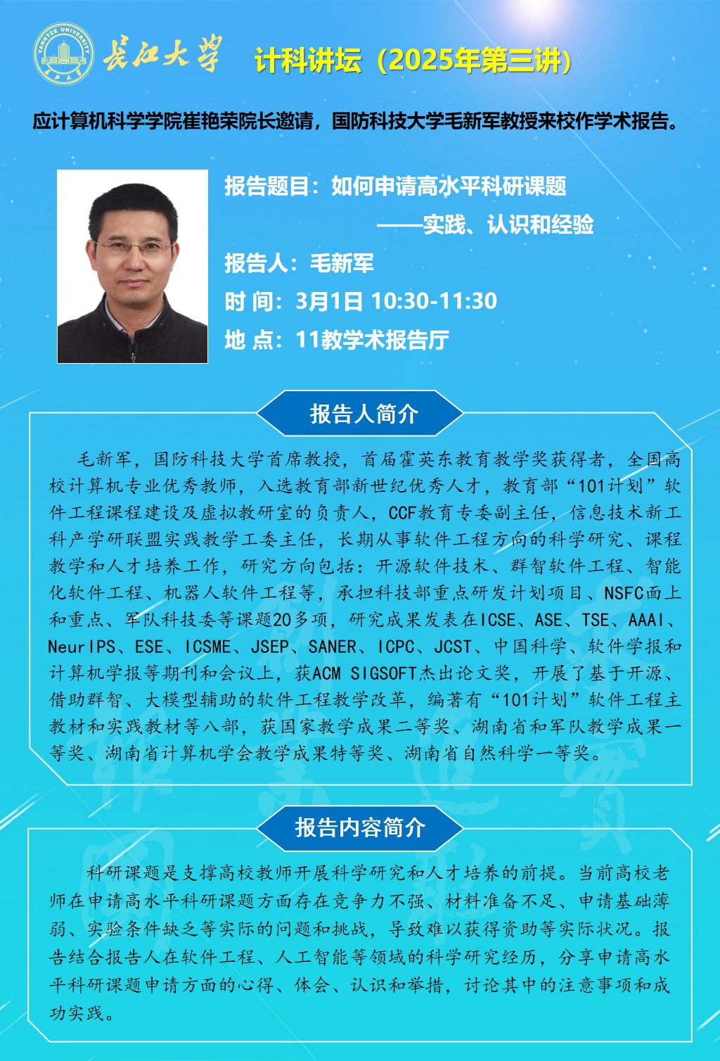 計(jì)科講壇(2025年第三講):如何申請(qǐng)高水平科研課題——實(shí)踐、認(rèn)識(shí)和經(jīng)驗(yàn)