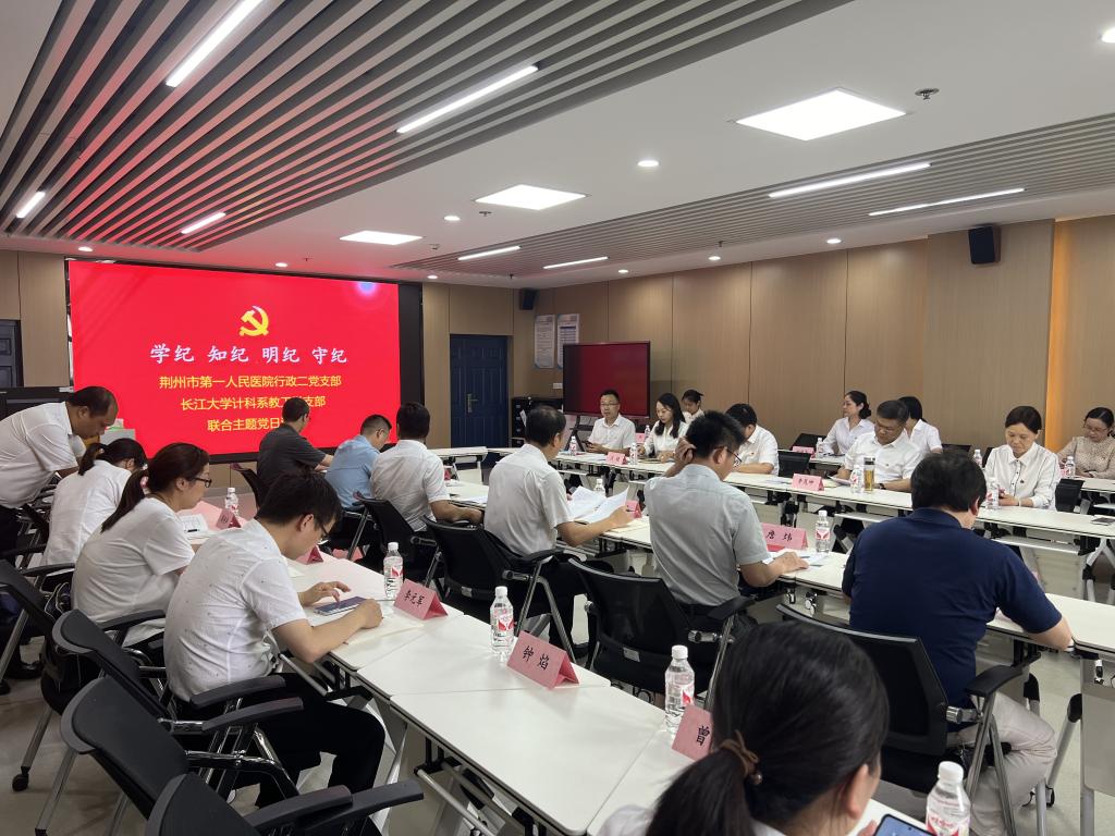 為深化黨紀學習教育成果,進一步發(fā)揮黨建政治引領(lǐng)作用,7月3日下午,由荊州市第一人民醫(yī)院黨委書記李茂坤同志帶領(lǐng)院行政二黨支部全體黨員與長江大學計算機科學學院計科系教工黨支部在文科大樓1008會議室聯(lián)合開展了“學研互促,打造產(chǎn)教融合高素質(zhì)黨員隊伍”主題黨日活動。長江大學黨委常委、副書記、副校長杜國鋒,計算機科學學院黨委書記鄭健同志參加主題黨日活動。