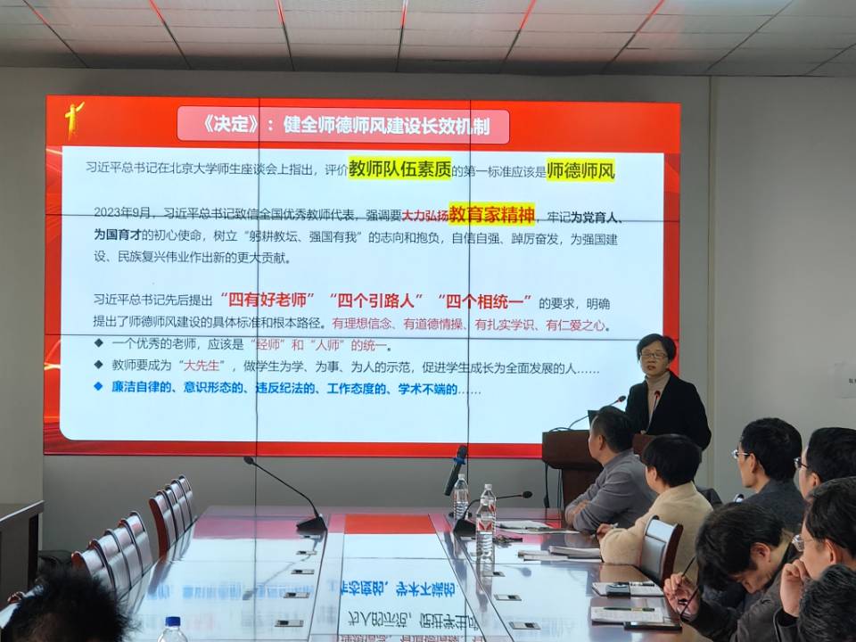 為深入學(xué)習(xí)貫徹黨的二十屆三中全會精神,全面加強師德師風建設(shè),11月21日,學(xué)院邀請劉小燕教授為全體教職工作黨的二十屆三中全會精神宣講報告,并開展師德師風專題教育。報告會由學(xué)院黨委書記鄭健主持。