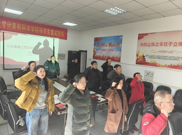為深入學(xué)習(xí)貫徹黨的二十屆四中全會精神,促進(jìn)黨建與育人工作融合,11月20日,計科系教工黨支部以“深學(xué)全會精神 勇?lián)耸姑睘橹黝},開展本月支部主題黨日活動。 活動伊始,全體黨員在曾凡軍老師帶領(lǐng)下重溫入黨誓詞,由李鵬老師領(lǐng)學(xué)《中國共產(chǎn)黨章程》第一章。隨后,黨支部按程序表決通過預(yù)備黨員張玉繁老師的轉(zhuǎn)正事宜。 活動中,張凱老師結(jié)合指導(dǎo)學(xué)生獲“挑戰(zhàn)杯”國家級二等獎的經(jīng)歷,講授“以學(xué)鑄魂、以學(xué)增智、以學(xué)正風(fēng)、以學(xué)促干”微黨課。他圍繞堅定信仰、科技報國、文化傳承與育人實踐,分享如何將全會精神融入教學(xué)科研,引發(fā)廣泛共鳴。 在理論學(xué)習(xí)與研討環(huán)節(jié),支部黨員集中學(xué)習(xí)習(xí)近平總書記重要講話、全會公報及上級會議精神,并立足計算機(jī)專業(yè)特點,就如何將全會精神轉(zhuǎn)化為育人動力展開深入交流。 本次活動深化了黨員對全會精神的理解,增強(qiáng)了育人使命感和責(zé)任感。大家表示,將進(jìn)一步強(qiáng)化理論學(xué)習(xí)和履職能力,踐行“為黨育人、為國育才”初心,為學(xué)院與學(xué)校發(fā)展貢獻(xiàn)力量。 (審核 鄭健 編輯 王桃群)
