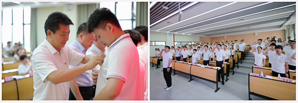 活動(dòng)中,黨員老師為畢業(yè)生黨員佩戴徽章,象征使命傳承。與會(huì)全體黨員重溫入黨誓詞,誓言鏗鏘,展現(xiàn)科技報(bào)國決心。