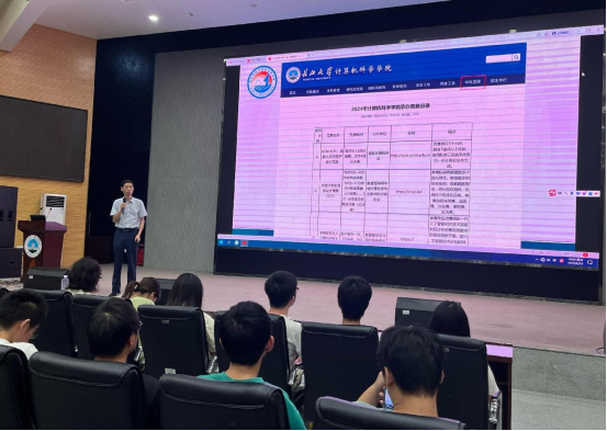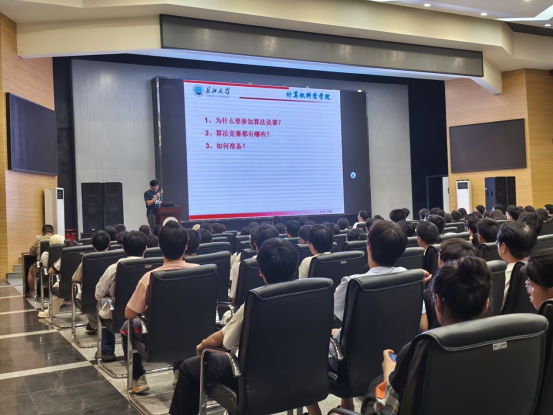 6月15日晚,計(jì)算機(jī)科學(xué)學(xué)院在西校區(qū)農(nóng)科大樓1058學(xué)術(shù)報(bào)告廳舉辦了一場(chǎng)面向2024級(jí)全體本科生的競(jìng)賽指導(dǎo)講座。本次活動(dòng)以“賽礪青春,創(chuàng)贏未來(lái)”為主題,旨在幫助新生深入了解學(xué)科競(jìng)賽,激發(fā)參賽熱情,并為未來(lái)的競(jìng)賽生涯做好規(guī)劃。講座由2022級(jí)優(yōu)秀學(xué)生代表鄭建斌、陳輝分享參賽經(jīng)驗(yàn),學(xué)院主管教學(xué)副院長(zhǎng)陳中舉老師作政策解讀與動(dòng)員指導(dǎo)。